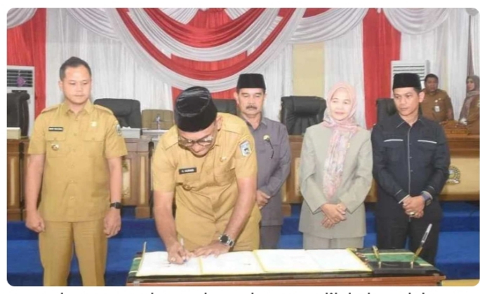 Penandatanganan kesepakatan bersama dilakukan oleh Bupati Sarolangun, Hurmin, bersama Wakil Bupati Gerry Trisatwika, serta Ketua DPRD Ahmad Jani, didampingi Wakil Ketua I Cik Marleni, SE dan Wakil Ketua II Dedi Ifriyansah, SM. Turut hadir 21 anggota DPRD lainnya dalam rapat tersebut.