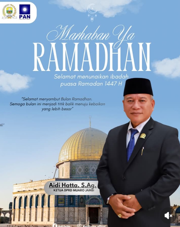 MUARO JAMBI – Menjelang datangnya bulan suci Ramadhan 1447 Hijriah, Ketua Dewan Perwakilan Rakyat Daerah (DPRD) Kabupaten Muaro Jambi, Aidi Hatta, S.Ag., menyampaikan ucapan selamat menunaikan ibadah puasa kepada seluruh masyarakat di Bumi Sailun Salimbai.