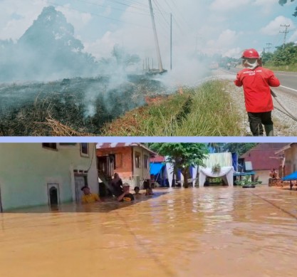 Selain kebakaran lahan, Provinsi Jambi juga dilanda peristiwa banjir yang merendam pemukiman warga di enam kecamatan di Kabupaten Sarolangun, Sabtu (25/4).